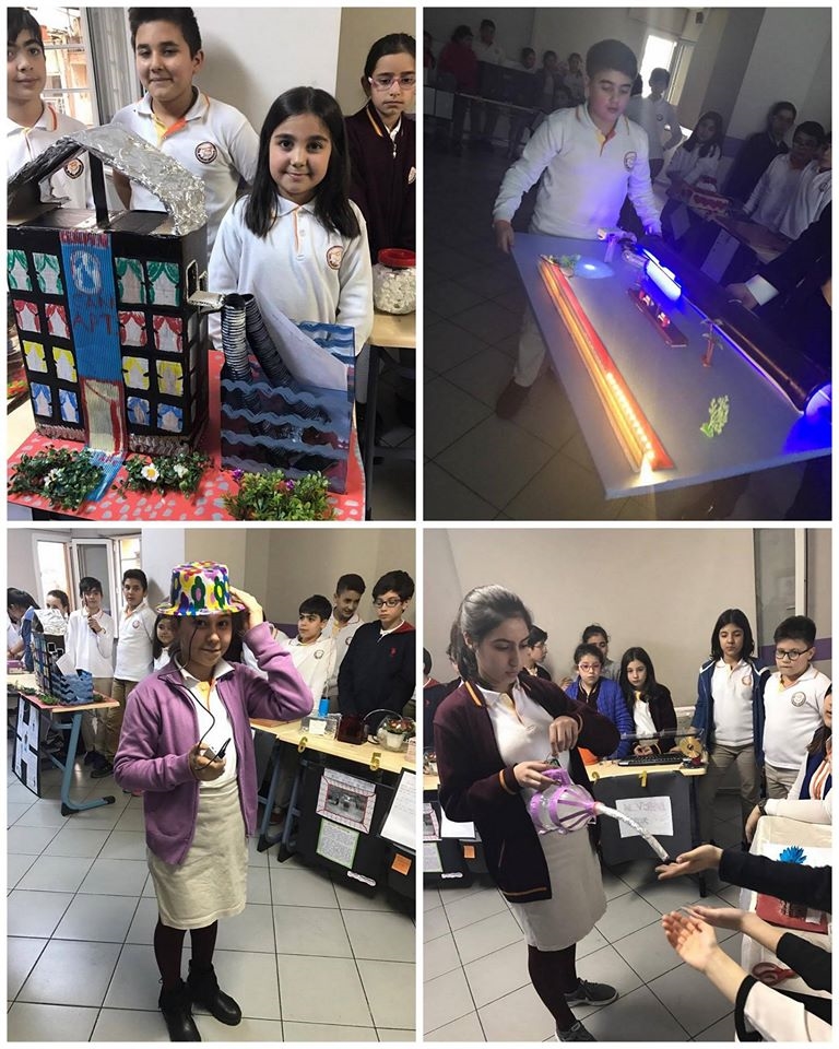 5.sınıflar içerisinde öğrencimiz Nur Betül ALTINAY yapmış olduğu "Robot Düzeneği" ile, 6.sınıflar içerisinde öğrencimiz İsmail Berat BEKİROĞLU yapmış olduğu "Led'li Şehir" ve 7.sınıflar içerisinde öğrencimiz Emre PARTİCİ yapmış olduğu "Buzlu Klima" icadı ile 1. oldular.